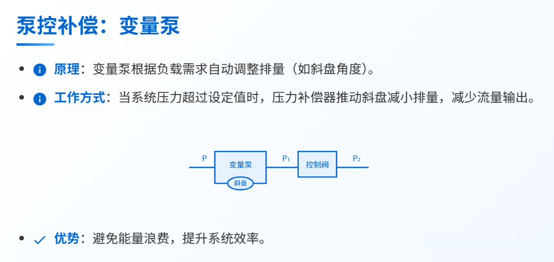定義: 液壓系統中,通過自動調節系統參數(如閥口開度或泵排量),維持節流閥前后壓差(△P)的恒定,從而確保通過閥口的流量穩定,不受負載壓力波動的影響。