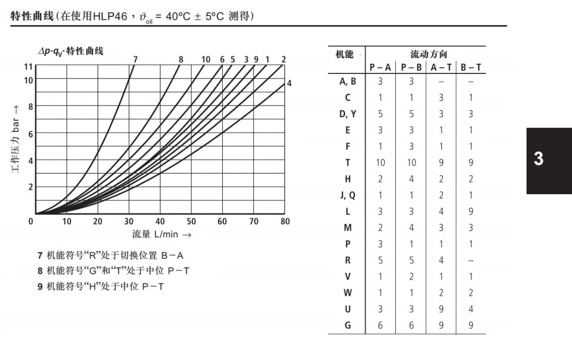 2.初選通徑:參考樣本中6通徑閥的額定流量(如40L/min或38L/min),若泵流量接近上限,需核實曲線是否涵蓋峰值。