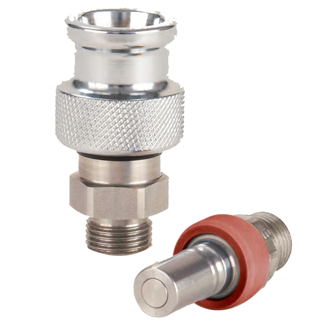 NSR 系列則是一款無溢流型快換接頭,它采用平齊端面閥芯設計,壓降損失 小,在連接或斷開時可減少溢流量和夾氣量。同時, 外部防塵套還能防止灰塵、 水等污染物在連接時進入管路內(nèi)部。該系列接頭通過歐洲 DIN EN61373:1999 抗震動標準,適用于軌道交通行業(yè),為制動系統(tǒng)的可靠性保駕護航。