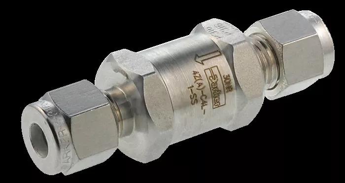 同時(shí),客戶還選用了CO系列單向閥,該閥適用于需要嚴(yán)格消除逆流的清潔工況和氣體應(yīng)用,尤其適用于小分子量氣體的應(yīng)用,是市場(chǎng)上為數(shù)不多的一款公布氦檢漏率的單向閥。