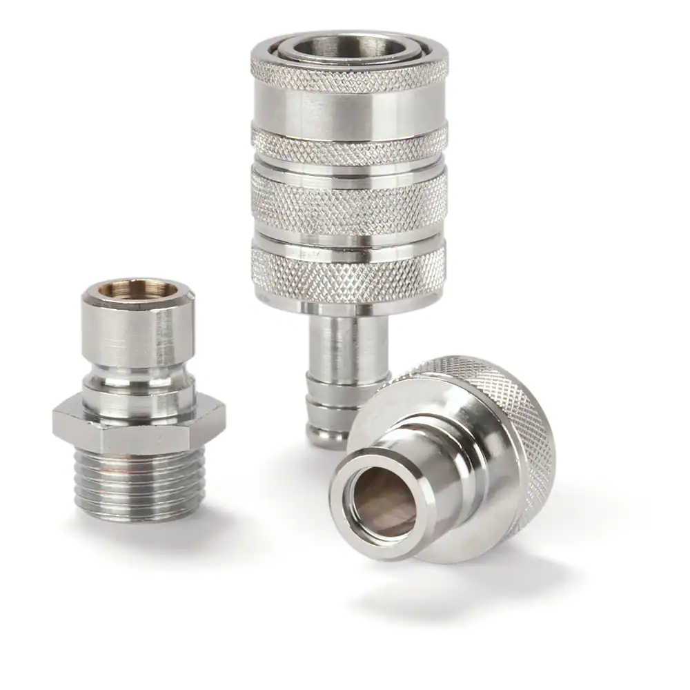 該系列快換接頭公稱通徑是11mm,主要用于氣動以及食品輸送的應用,耐壓可達35bar。該系列快換是直通型結構,設計符合派克內部的設計。可選接頭材料:黃銅。